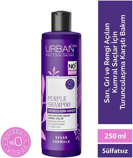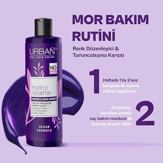 Sarı, gri ve açık kumral renkte saçların istenmeyen renk kırılmaları ve oluşumlarını engellemek için geliştirilmiş mor saç bakım serisi