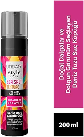 Deniz tuzu saç köpüğü, bitkisel keratin kompleksi ve UV filtresi içeren formülü ile saçlarda doğal dalgalar oluşturur
