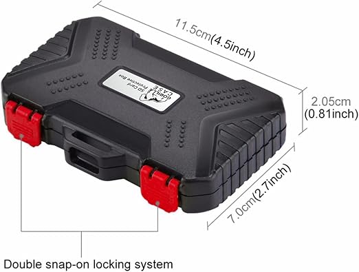 【 Koruyucu Özellikli 】Suya dayanıklı sert ABS dış gövde, hafıza kartlarını yağmura, kire, çizilmeye ve darbelere karşı koruyucu özel tasarıma sahiptir. Su içerisinde uzun süre kalmaya uygun değildir.
