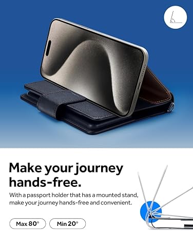 Pasaport tutucu, serbest duran metal menteşe ile 11 inç’in altındaki çeşitli e-kitapları, anahtarları ve diğer tabletleri / cihazları monte etmenizi sağlayan bir stand fonksiyonu ile donatılmıştır; Pasaport kapağımız, stand işlevini istediğiniz zaman, istediğiniz yere kadar kullanmanıza olanak tanır. seyahat ederken maksimum 80 ° açılma açısına sahiptir.