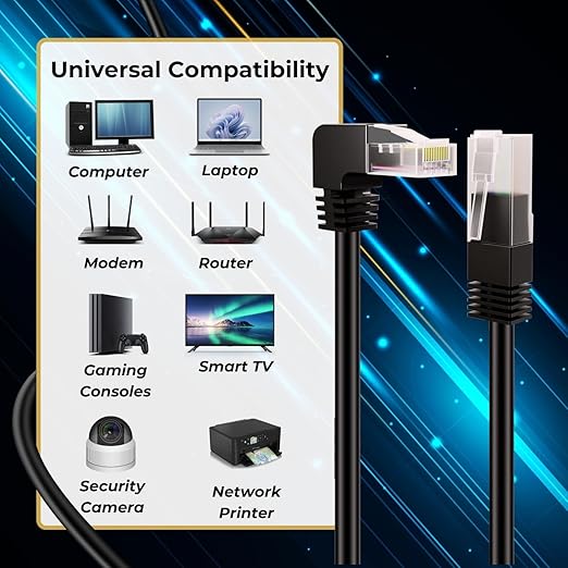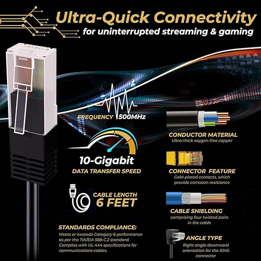 Cat6 Ethernet kablosu (sağ açı) – RJ45 90 dereceye kadar ağ bağlantısı 500 MHz 10 Gigabit altın kaplama patch fiş için tel LAN ip PS4 Fire-Stick Xbox One Smart TV Gaming & bilgisayar 1.8 M (Right Angle Up) CBL_CAT6_UP_BLK_6FT