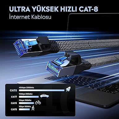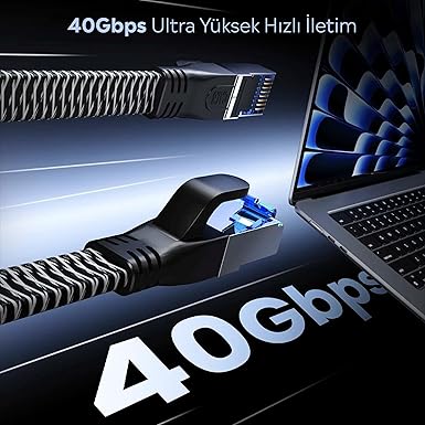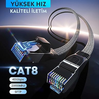 Cat8 Ethernet Patch Adsl Modem İnternet Kablosu (Cat8, 5 Metre)
