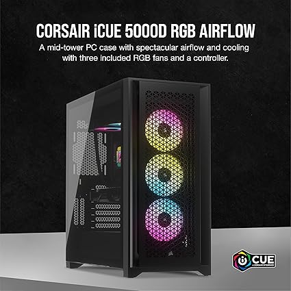 CC-9011242-WW iCUE 5000D RGB AIRFLOW 3xAF120 Mid-Tower Siyah Gaming Kasa