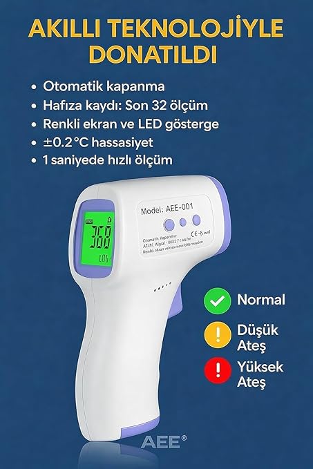 3 FARKLI IŞIKLI LED EKRAN – Gece kullanımına uygun, renkli ekran ile ateş durumunu kolayca anlayabilirsiniz.