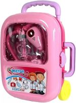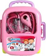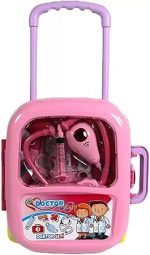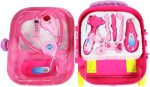 Çek-Çek Valizli Büyük Boy 10 parça Işıklı-Sesli Medikal Doktor Seti 2in1 – Doktor Oyun Seti Pembe