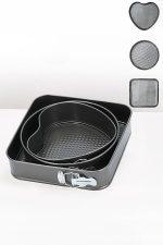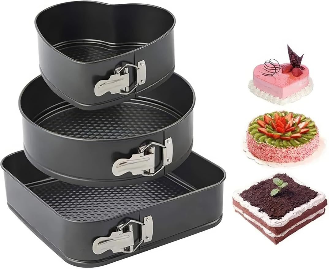 Çelik 3 Parça 22-24-26cm Kalp Yuvarlak Kare Kelepçeli Kek Kalıbı cin798sy