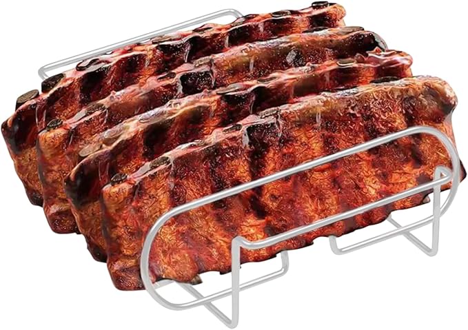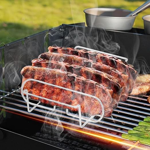 Çelik Barbekü Rafı,Izgara için Kaburga Standı,Barbekü Kavurma Pişirme Pişirme Dinlenme Açık Mutfak Kamp için Biftek Tutucu