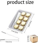 çelik buz küpü seti, 8 adet viski taşı seti, silikon klipsli, viski, votka ve tekil için, altın