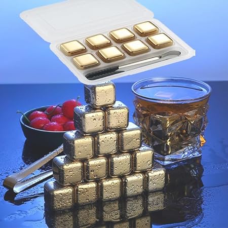 çelik buz küpü seti, 8 adet viski taşı seti, silikon klipsli, viski, votka ve tekil için, altın