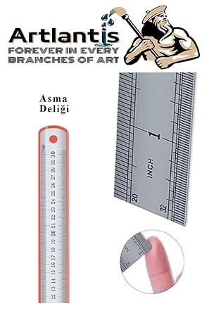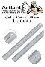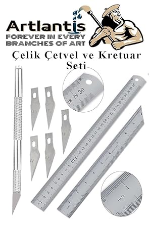 Çelik Cetvel 30 cm ve Kretuar Bıçağı 5 Yedek Bıcaklı 1 Adet Paslanmaz Çelik Metal Çetvel 30 Santimetre