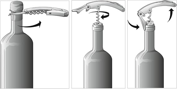 3’ü 1 arada fonksiyonlu profesyonel garson çatal bıçak takımı: Kapsülü zahmetsizce kesmek, şarap şişelerini açmak ve şişe kapaklarıyla şişeleri açmak için