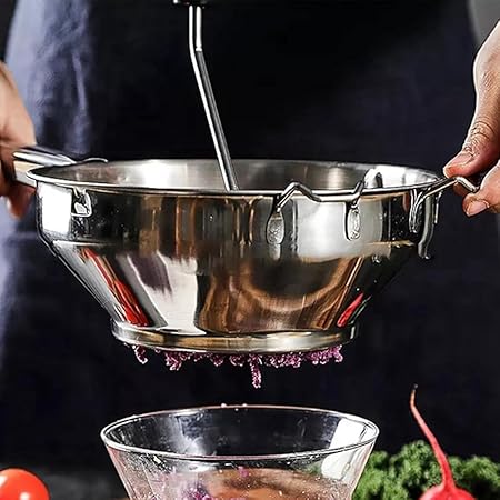[Kullanımı ve Çok Yönlü] Daha fazla rahatlık ve daha hızlı temizlik için bulaşık makinesidir. Güvenlik için ellerinizi temiz tutmak için uzun bir ve karıştırma kaselerine veya pişirme işlemlerine uyan küçük bir yardımcı tutamak ile donatılmıştır. Çorbalar, meyve suyu veya İtalyan yemekleri için ezme ve tohumlar. Ayrıca meyvelerden tohumları yemek için süzebilir, akşam yemeğinde patatesleri ezebilir veya turtalar veya diğer tatlılar için meyve püresi yapabilirsiniz.