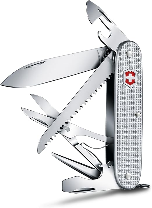 Fonksiyonlar; büyük bıçak, konserve açacağı, şişe açacağı, kablo sıyırıcı, delik açıcı, anahtarlık halkası, testere, makas, tornavida 3 mm, tornavida 7.5 mm