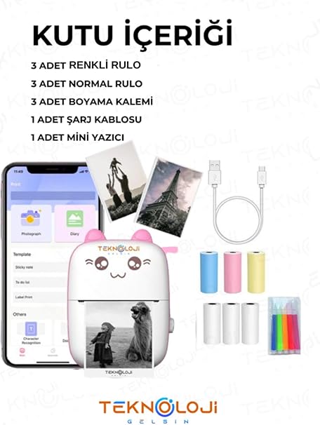 Zengin Set İçeriği: 6 adet yazıcı rulosu (3 normal + 3 renkli) ve 3 adet boyama kalemi hediye olarak kutu içerisindedir.