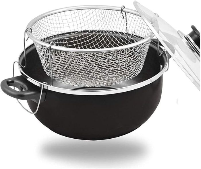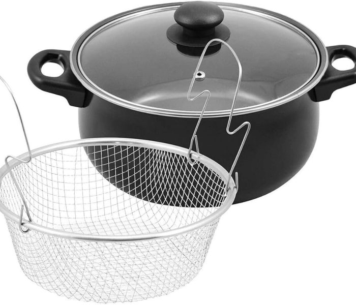 Çeyiz Emaye Cam Kapaklı Patates Biber Kabak Sosis Patlıcan Kızartma Tenceresi Fritöz (24Cm)