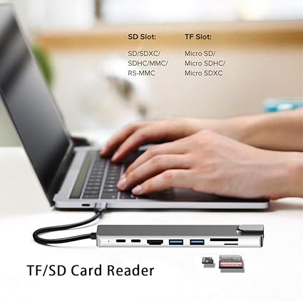 CF10 Macbook Uyumlu Type-C™ To 4K HDMI 2* Type-C 2* USB 3.0 Ethernet Lan 2* SD 8IN1 Çevirici Hub Adaptör