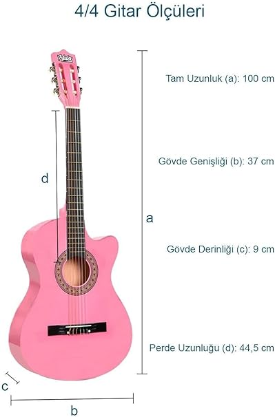 Midex CG-395PK Pembe Renk Kesik Klasik Gitar 4/4 Yetişkin Boy Sap Ayarlı Full Set