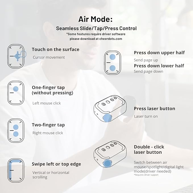 Cheerdots2 Basic Akıllı Kablosuz Air Mouse Jiroskop Sensörlü Lazer Pointer Özellikli Profesyonel Sunum Kumandası 2.4GHz USB Tak-Çalıştır 20m Menzilli Şarjlı Presenter CHP04