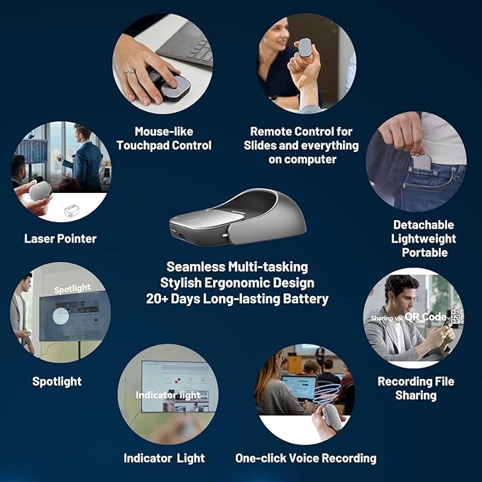 [Gelişmiş Sunum Kontrol Tuşları] Slayt ileri-geri geçiş, sunum başlatma/durdurma ve temel navigasyon komutlarını tek cihaz üzerinden yönetebilirsiniz. PowerPoint, PDF sunumları ve benzeri yazılımlarla uyumlu çalışarak profesyonel sunum deneyimi sağlar.