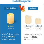 【6 Uzun Ömürlü Pil Dahil】Yüksek kapasiteli CR2450 pil zamanlayıcısına ve enerji tasarruflu LED ışıklara sahip uzaktan kumandalı pil mumları. Titreyen LED lamba 200 saatten fazla yanar.