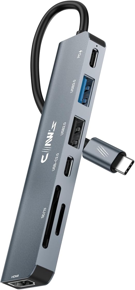 Claw’s CHUB007-P 7in1 Çevirici HUB Çoklayıcı *1x 4K HDMI Port *1x USB-C 100W PD *1x USB 3.0 5Gbps *1x USB-C Data *1x USB 2.0 480 Mbps *1x TF Card Slot *1x SD Card Slot