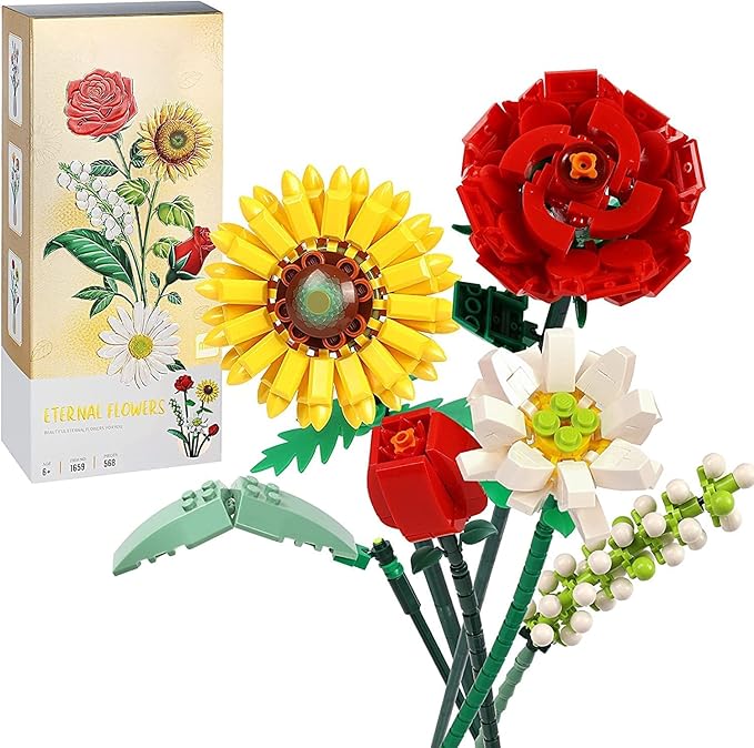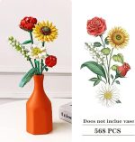 Çiçek Buketi Yapı Seti, Yapay Gül Çiçekleri Yapı Taşları, Kendin Yap Benzersiz Dekorasyon Ev, Botanik Koleksiyonu (568 ADET (Ayçiçeği/Gül/Zambak/Papatya))