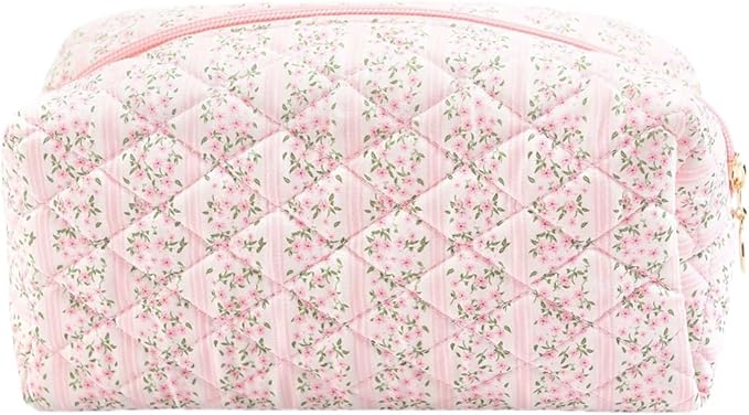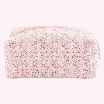 Çiçek desenli kadın kozmetik çantası, büyük kapasite, pamuk, estetik kişisel bakım çantası, fermuarlı, dolgulu düzenleyici çanta, genç kızlar için günlük el çantası, Pembe., Moda/Seyahat