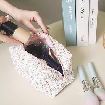Çok yönlü çiçek deseni: Bu yastıklı düzenleyici çanta, sevimli bir çiçek baskısı ile süslenmiştir ve madeni para, kart ve mücevher gibi küçük eşyalar için büyüleyici bir makyaj çantası veya düzenleyici görevi görür ve saklama kapasitenizi genişletir