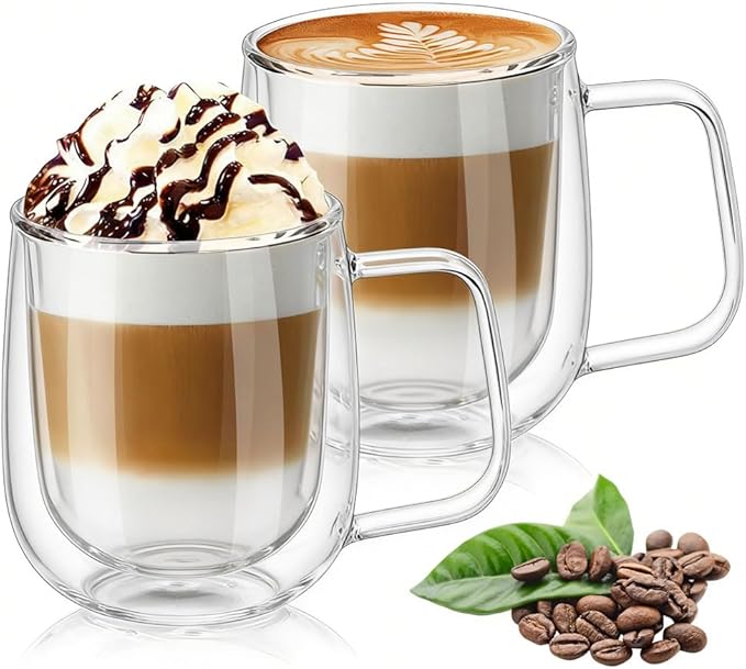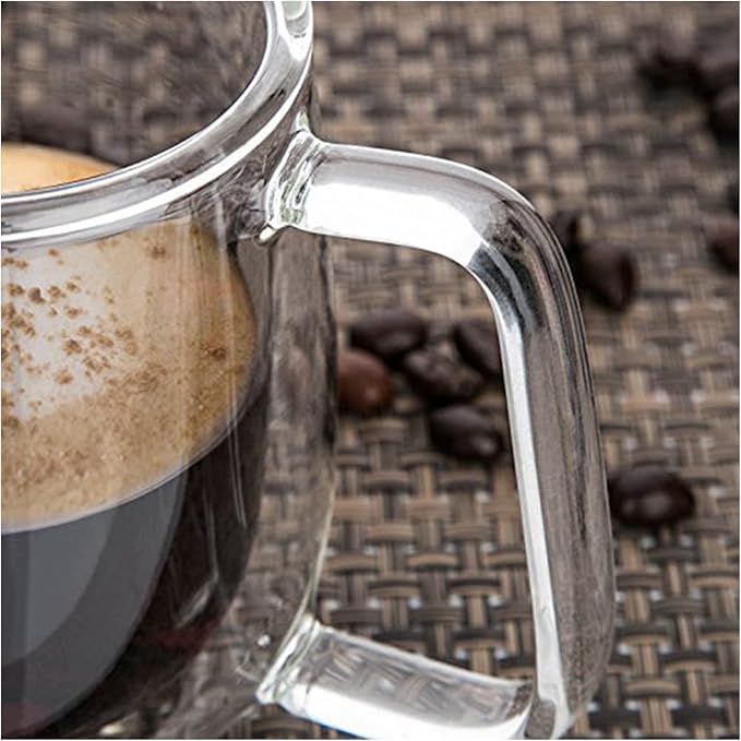 Çift Duvar Cam Kupa, Isı Yalıtımlı Bardak Bardak, Saplı 250 ml, Çay Su Bardakları, Kahve, Süt, Cappuccino, Espresso, Şeffaf Bira, 2’li Set
