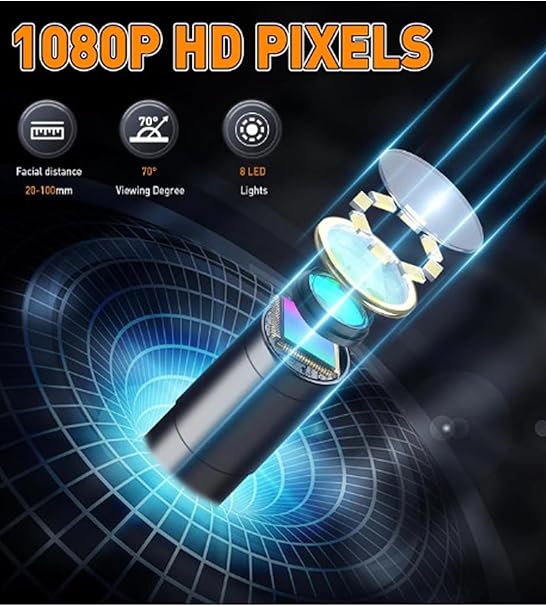 Çift kameralı 10 Mt Sert Kablo Yılan Endoskop Kamera 8 mm 4.3 ınc