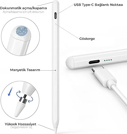 Gelişmiş Şarj Göstergesi Mavi ışık: Kalem açık Kırmızı ışık: Şarj oluyor Yeşil ışık: Tam şarj oldu ⏲️ 30 dakika kullanılmadığında otomatik kapanır.