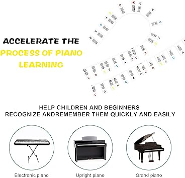 Çok Yönlü ve İşlevsel: Piyano kaplamamızı takmak hızlı ve kolaydır. Piyano tuşlarınızın yüzeyini temizleyin, silikon nota şeridini tuşların üzerine dikkatlice yerleştirin. Oynarken parmaklarınızı rahatsız etmeden istediğiniz zaman kolayca yerleştirilir ve çıkarılır.