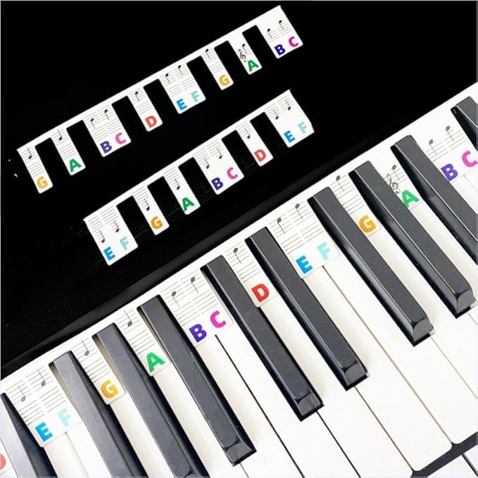 Net nota etiketleri: Piyano için silikon şeritlerimiz net ve parlak semboller kullanır, böylece düşük ve yüksek tonlar arasında net bir görsel ayrım vardır, bu da anahtar pozisyonlarına, oktav kurallarına ve nota yapraklarına aşina olan yeni başlayanlar için yararlıdır