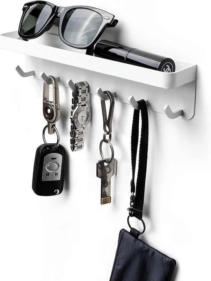 Çıkışlı Anahtar Tutucu Duvar Anahtar Rafları için 6 Kancalı Posta Düzenleyici – Duvara Monte Kolay Kurulum Ev Giriş Dekoru için Metal Anahtar Askısı, Koridor, Ofis (Beyaz)
