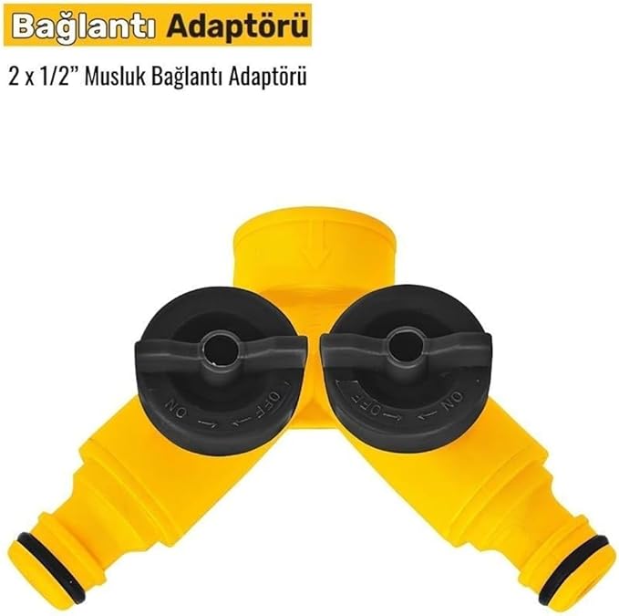 Bahçenizde pratiklik ve verimlilik sağlayan 2 Çıkışlı Musluk Bağlantı Adaptörü, her iki hortumun bağımsız şekilde çalışmasını sağlar ve sulama süreçlerinizi kolaylaştırır.
