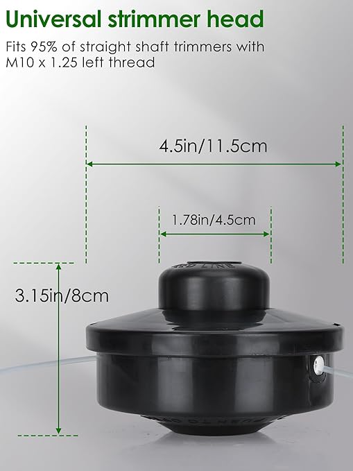 Evrensel – Bu evrensel benzinli çim biçme başlığıdır, çoğu çim biçme makinesine uyar. M10x1,25LH dişli. Yedek düzeltici başlığı, her zaman hasarlı bir çim biçme başlığına hazır olun.