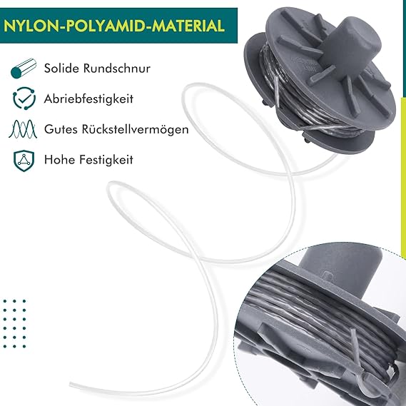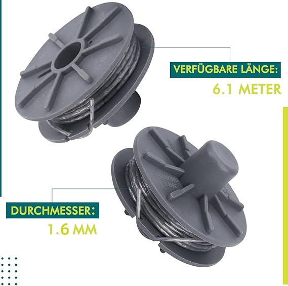 Çim biçme makinesi iplik makarası 5307-20 Gardena Art 9805, 9806, 9807,9808, 9809, 9827, 8846, 8847, 8848, 9870, 9872, 9874 için uygun yedek iplik makarası 6,1 m uzunluk Ø 1,6 mm (4 adet)