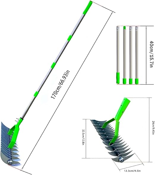 çim tırmığı, ölü çimleri temizlemek için tırmık, bahçe çim temizleyici tırmık | geniş çim tırmığı, kolay montaj, sazdan bahçe aleti