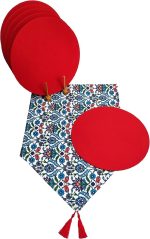 Çini Desenli Runner 6’lı Kırmızı Supla Set V00020886