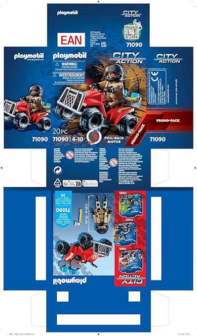 İçindekiler: 1 x Playmobil City Action Yangın Kurtarma Dörtçeker Arazi Aracı, 20 parçalı oyun figürü seti, talimatlarla birlikte: 1 x ATV, 1 x figür, 18 x aksesuar, Malzeme: Plastik, UxGxY: 26,5 x 24 x 27 cm Ağırlık: 86 g, 71090