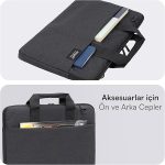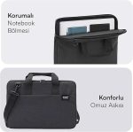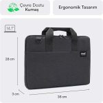 İdeal Boyutlar: Siyah rengi ile hem erkek hem de kadın kullanıcılar için uygun olan laptop çantası, 36*28*3cm boyutları ve 3L ile ideal bir depolama alanı sunar.