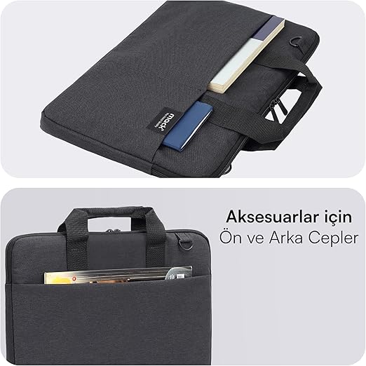 Ergonomik ve şık tasarımı sayesinde Laptop çantası 14,1 inç, hem iş çantası hem evrak çantası olarak kullanılabilir. Ayrıca aksesuarlar için özel olarak tasarlanmış ön, arka ve iç cepler, kullanıcının eşyalarını organize etmesine ve kolay erişim sağlamasına yardımcı olur.