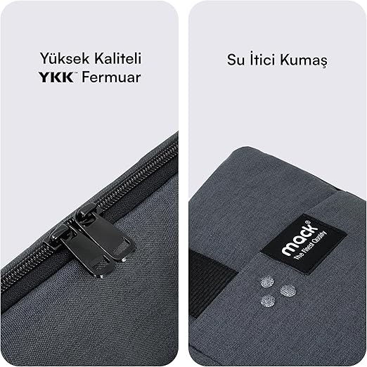 Çevreci ve Kaliteli Malzeme: Notebook çantası çevre dostu geri dönüştürülmüş su itici kumaştan üretilmiş ve yüksek kaliteli YKK fermuar ile donatılmıştır. Bilgisayar çantasının tüm bileşenleri Avrupa Birliği normlarına göre Türkiye’de üretilmiştir ve hiçbir zararlı madde içermez. Mack Laptop çantaları ile bilgisayarınızı korurken aynı zamanda çevreyi de koruyun.