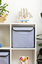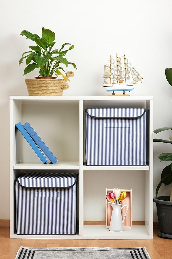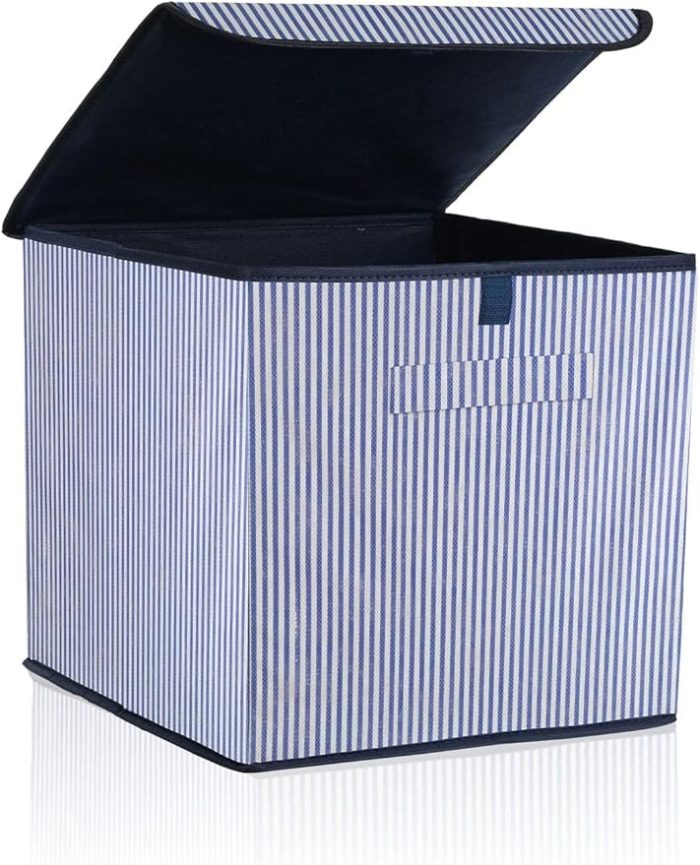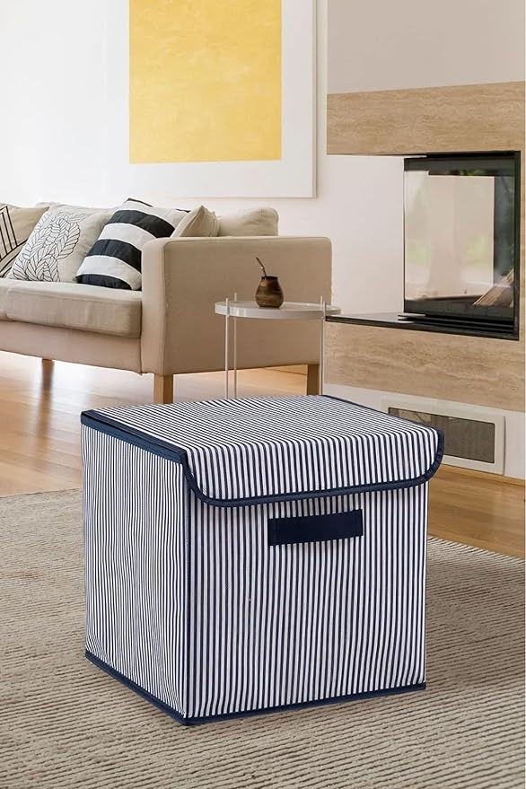 Çizgili Kapaklı Dolap İçi Çamaşır Oyuncak Düzenleyici Katlanır Saklama Kutusu 30x30x30