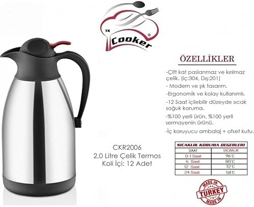 CKR-2006 Paslanmaz Çelik Termos 2 Litre Siyah