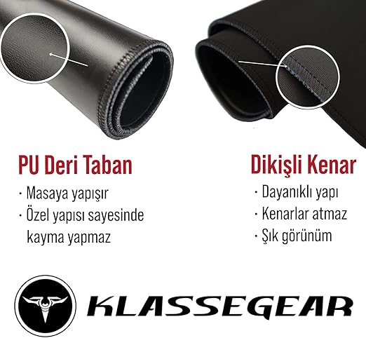 MATERYAL: Ürünün masa ile temas eden kısmı kaymaz ve dayanıklı PU deriden üretilmiştir. Mousepad’i masaya serdiğinizde en ufak bir kaymayla karşılaşmayacağınız şekilde dizayn edilen PU deri ile kumaş arasındaki yumuşak ve ince eva sayesinde mousepad’iniz ergonomik bir yapıya sahip olup uzun kullanımlarda sizi rahatsız etmeyecektir.