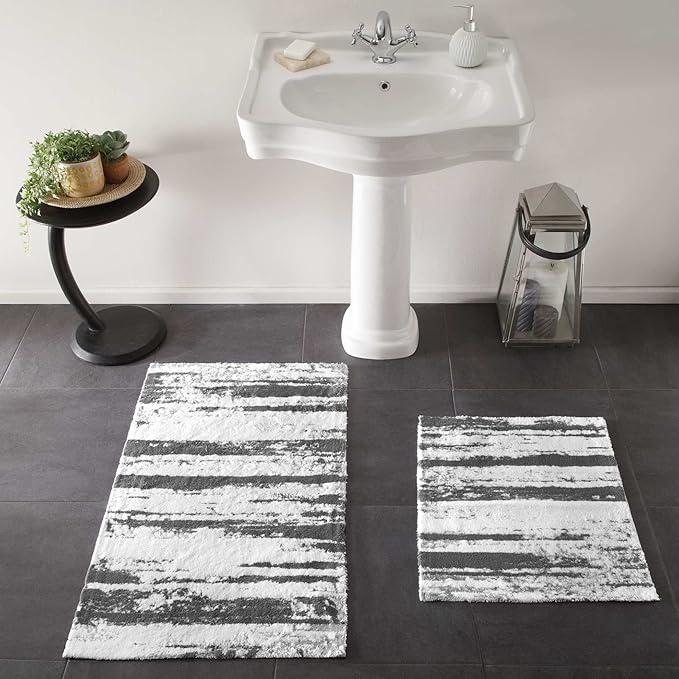 Classy Desenli%75 Pamuk%25 Viscoz Paspas Seti, Antrasit, 1 Adet 50×60 cm / 1 Adet 60×100 cm