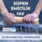 ÜRÜN ÖZELLİKLERİ : Harika bir su emiş kabiliyeti vardır. Silinen yüzeyde parlaklık ve canlılık gösterir. Emici ve çok dayanklıdır. Yüzeyi çizmez ve su izi bırakmaz.