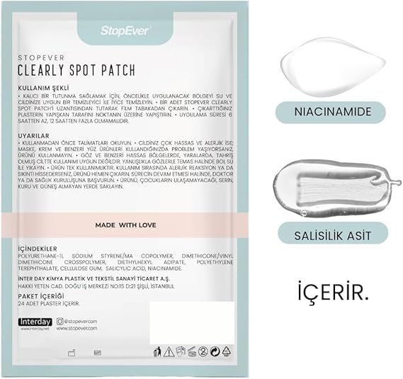 Clearly Spot Patch, Sivilce Karşıtı Şeffaf Plaster | Şeffaf, Ultra İnce, Hidrokolloid + Niacinamide + Salicylic Asit İçerikli Akne Karşıtı Yüz Bandı | 24 Adet