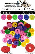 cm 50 li 1 Paket 18 mm Plastik Renkli Düğme Dikiş Parlak Yuvarlak 4 Delikli Düğme Etkinlik Okul
